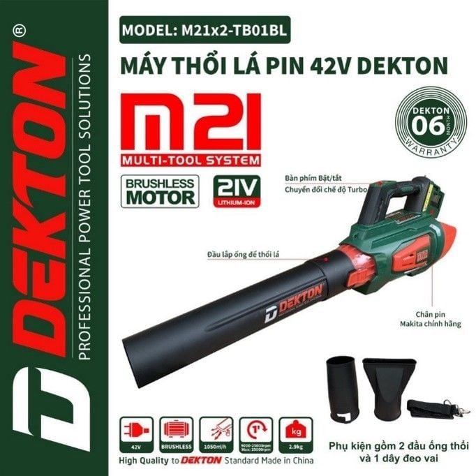 Máy thổi lá Dekton M21x2 -TL01BL là máy thổi lá bằng Pin lithium - chân pin Makita